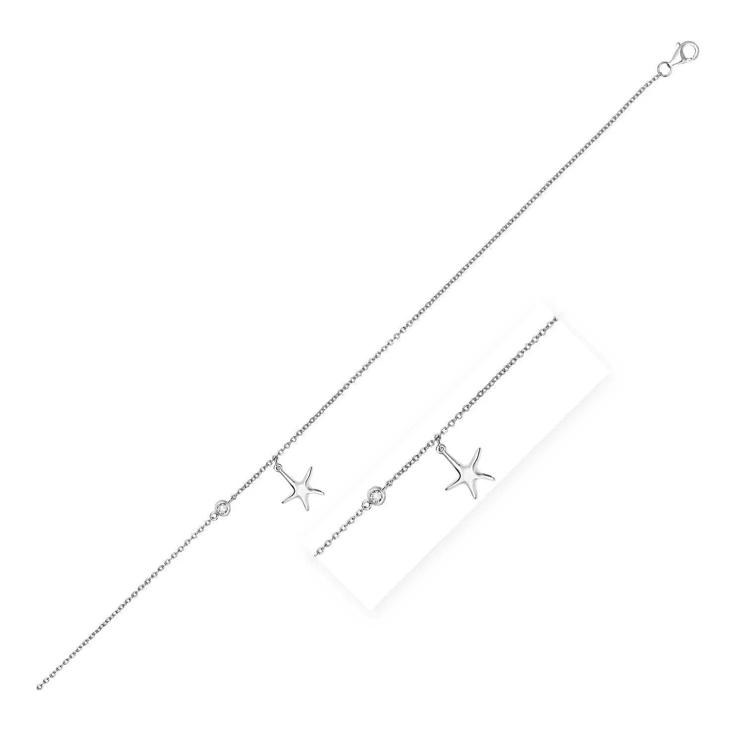 Sterling Silver Anklet with Starfish Charm and Cubic Zirconia