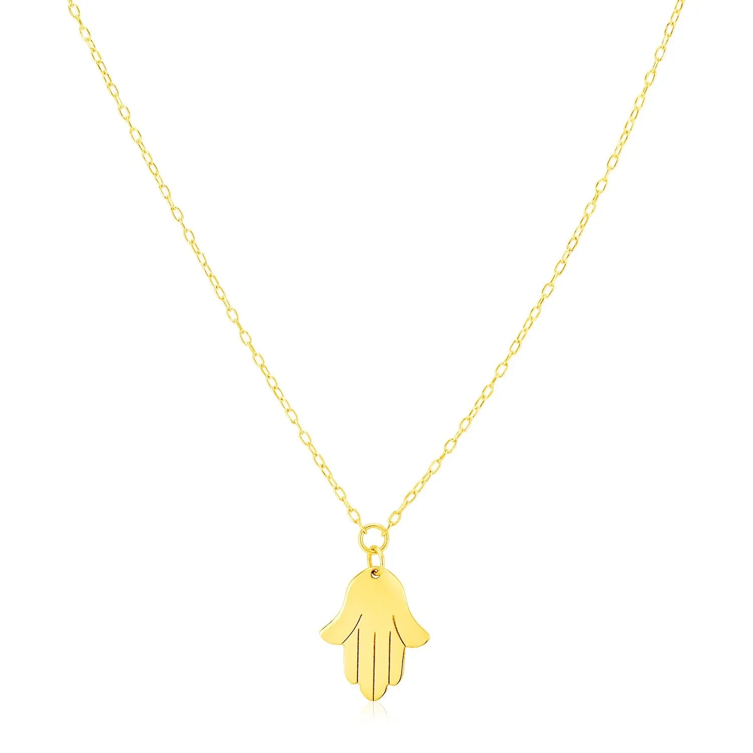 An image displaying 14K Yellow Gold Hand of Hamsa Necklace by Orca Market