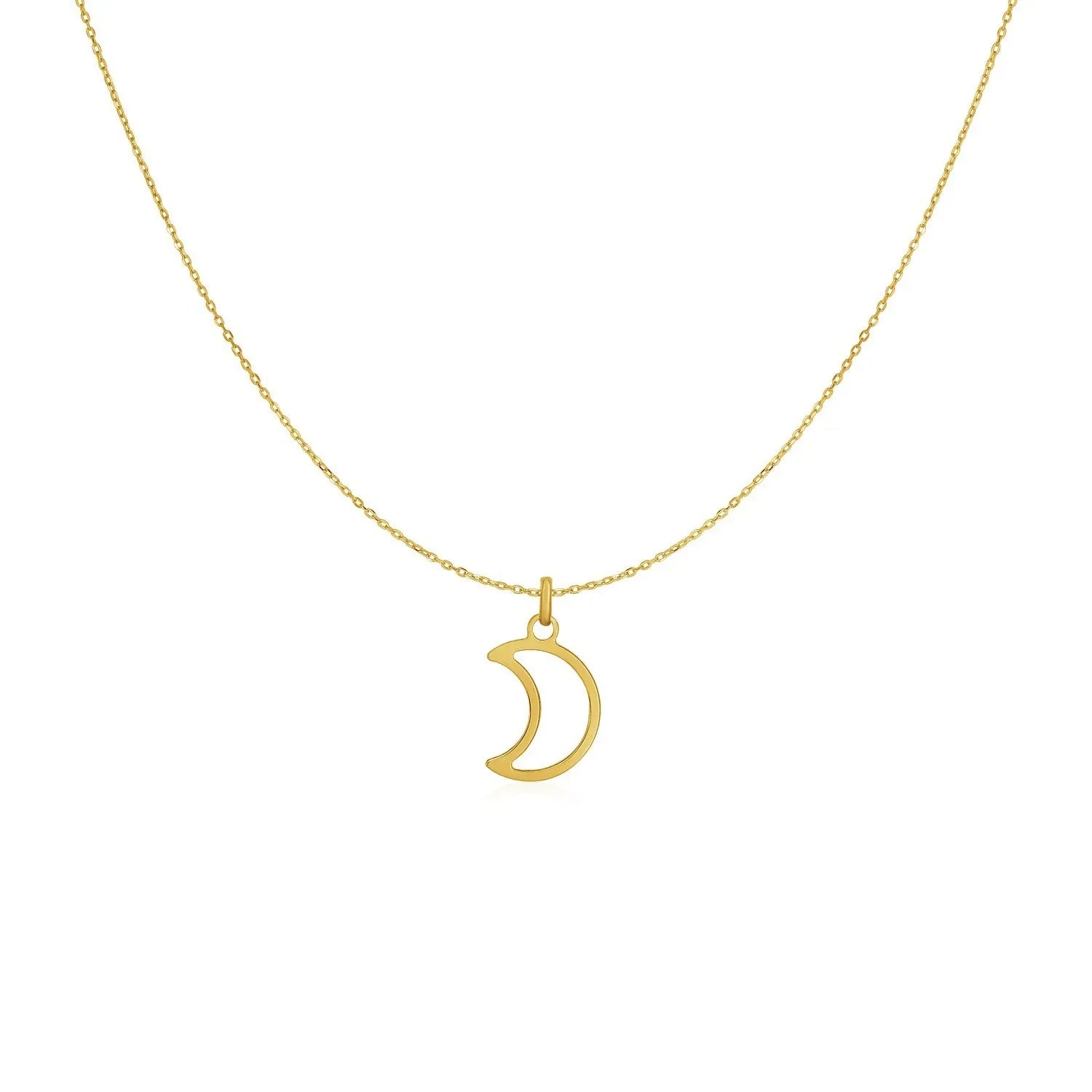 Wear the beauty of the night when you adorn yourself with a lovely moon necklace in 14k yellow gold. Necklace is 18 inches long and closes with a spring ring clasp.