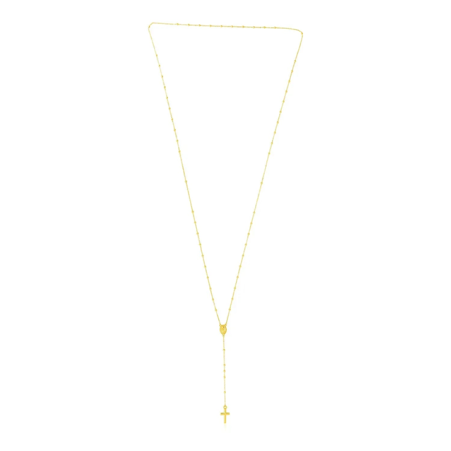 The inspiration of dazzling 14k yellow gold meets the traditional motifs of a classic rosary in this glorious necklace. Necklace is 26 inches long.
