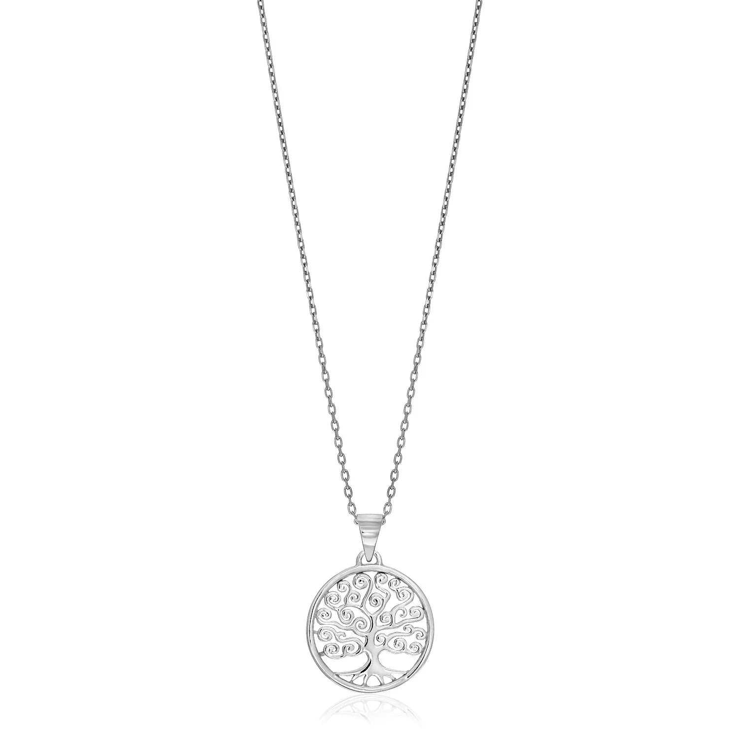 Sterling Silver Round Spiral Motif Tree of Life Necklace