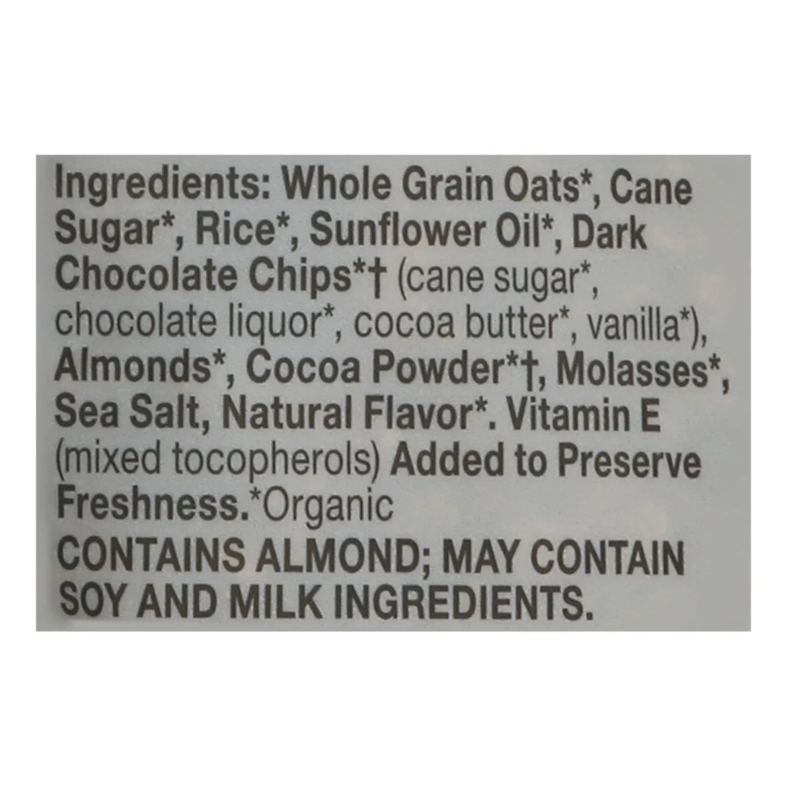 ingredients : whole grain oats;cane sugar;rice;sunflower oil;dark chocolate chips* (cane sugar*, chocolate liquor*, cocoa butter*, vanilla*);almonds;cocoa powder* ;molasses;sea salt;natural flavor