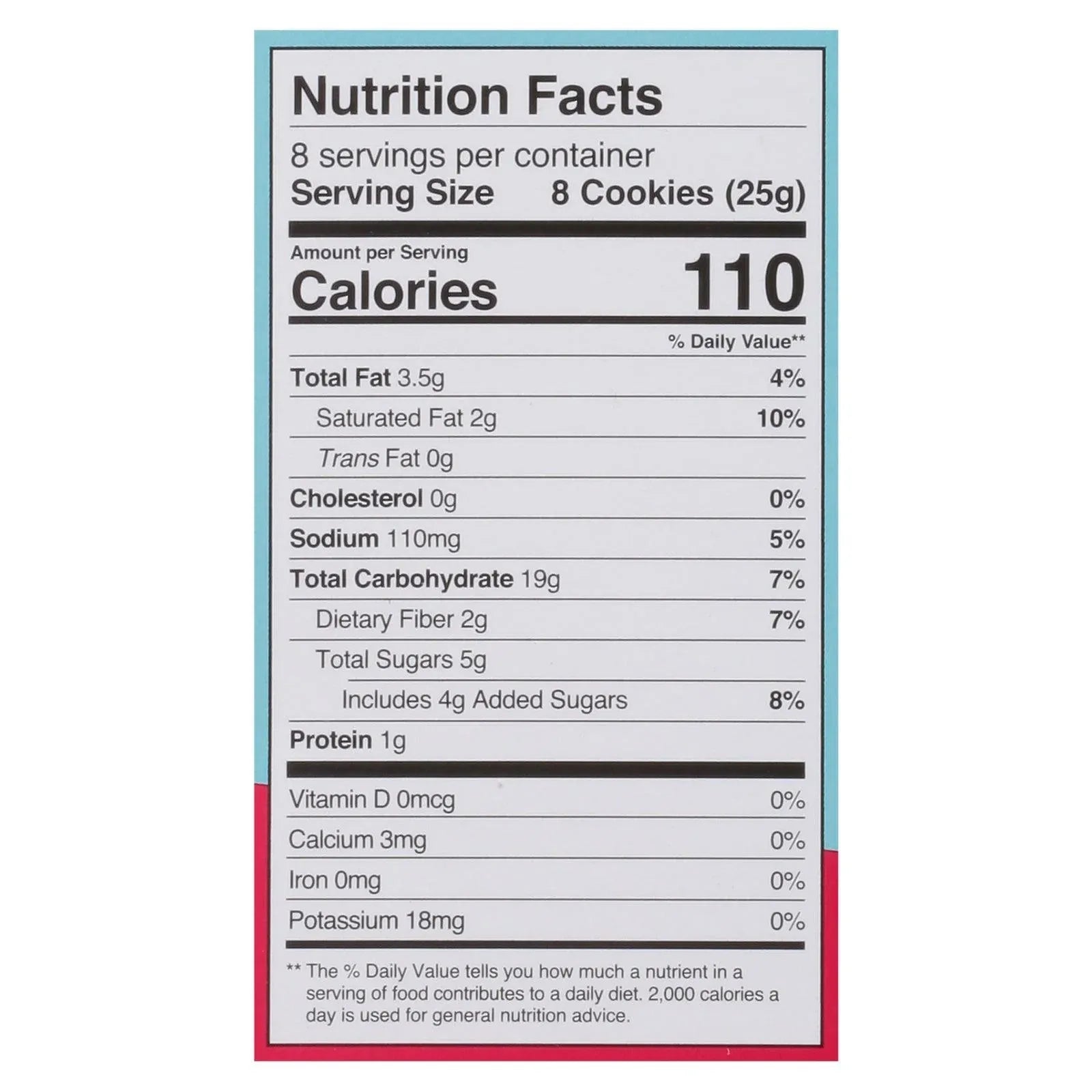 ingredients : wheat flour;cane sugar;palm oil†;chicory root fiber;chocolate chips (sugar, unsweetened chocolate, cocoa butter, soy lecithin [emulsifier], vanilla extract);natural flavors;salt;baking soda
