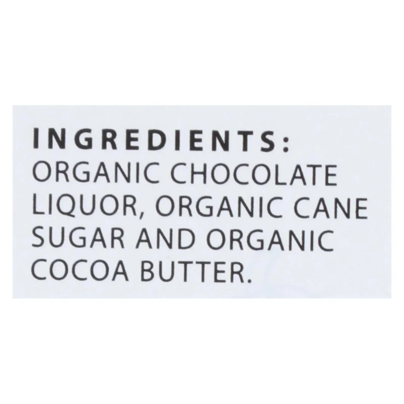 ingredients : organic chocolate liquor;organic cane sugar and organic cocoa butter