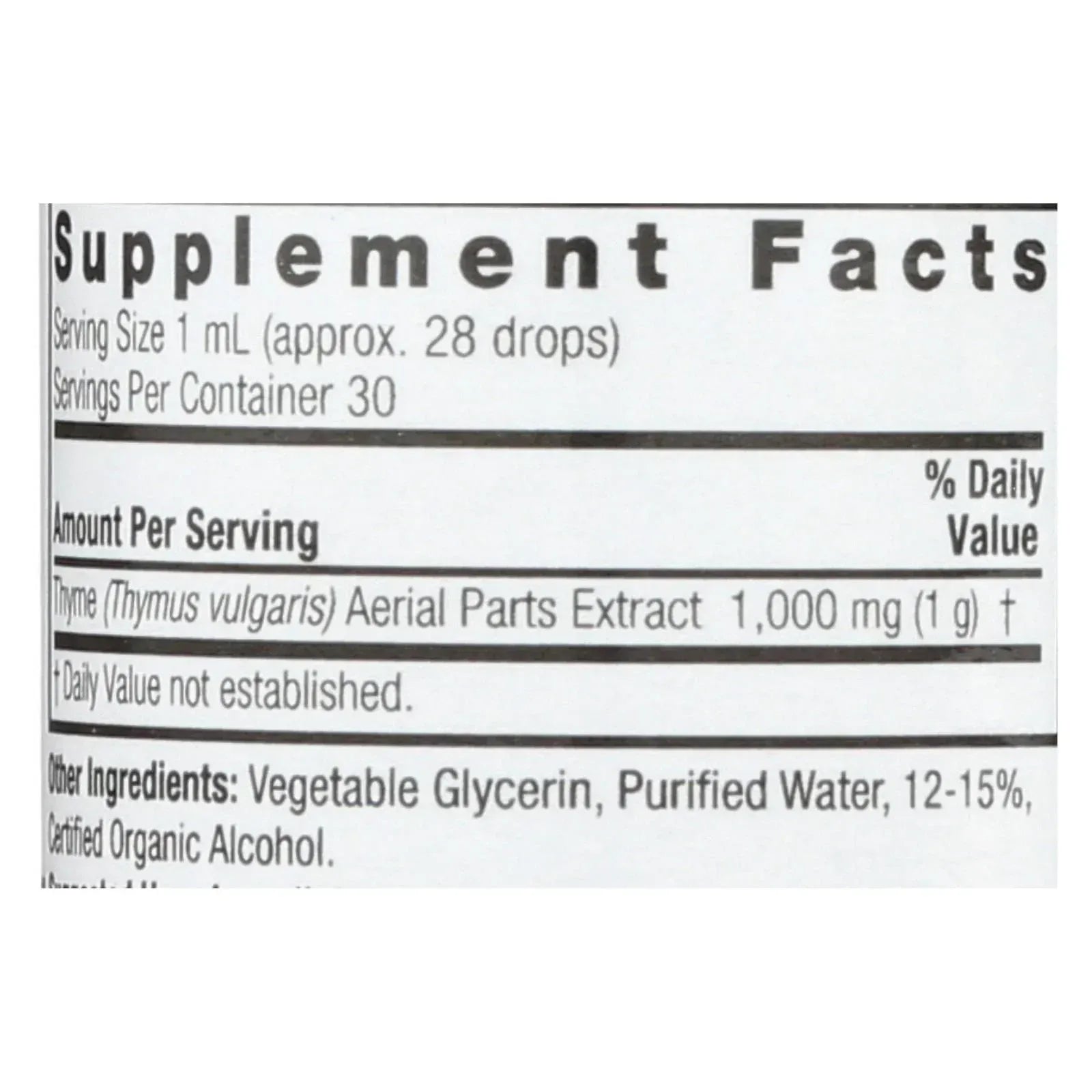 Nature's answer thyme super concentrated herbal supplement contains 1,000 mg. Of thyme aerial parts extract per serving for optimum effectiveness. We use organic alcohol extracts created from our cold bio-chelated proprietary extraction process for well-balanced results. This 1 fl. Oz. Bottle provides around thirty 1 ml. Servings of concentrated herbal supplement.