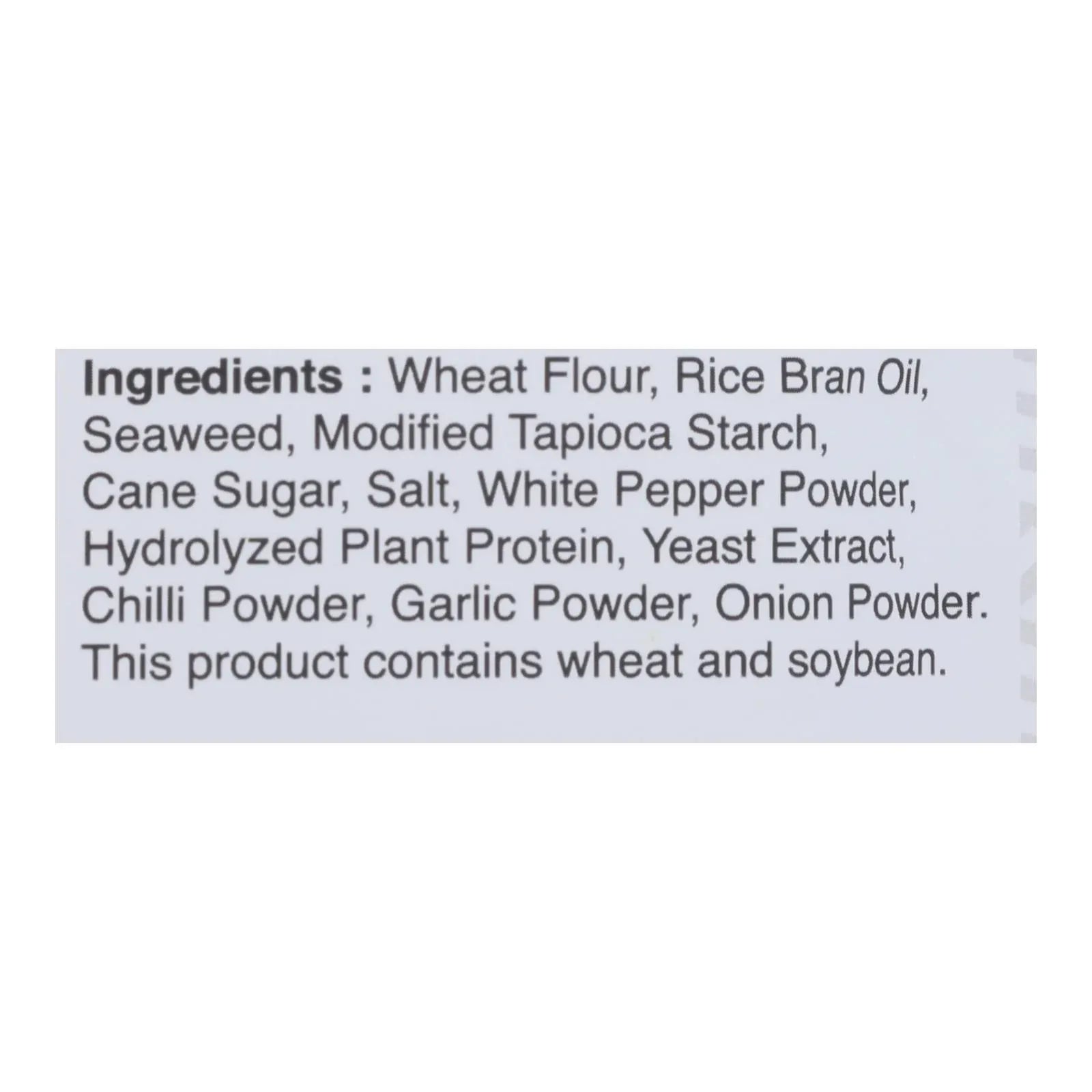 ingredients : wheat flour;rice bran oil;seaweed;modified tapioca starch;cane sugar;salt;white pepper powder;hydrolyzed plant protein;yeast extract;chili powder;garlic powder;onion powder