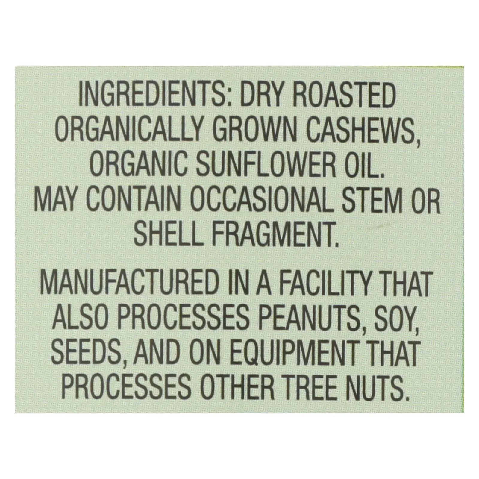 ingredients : dry roasted organically grown cashews;organic sunflower oil