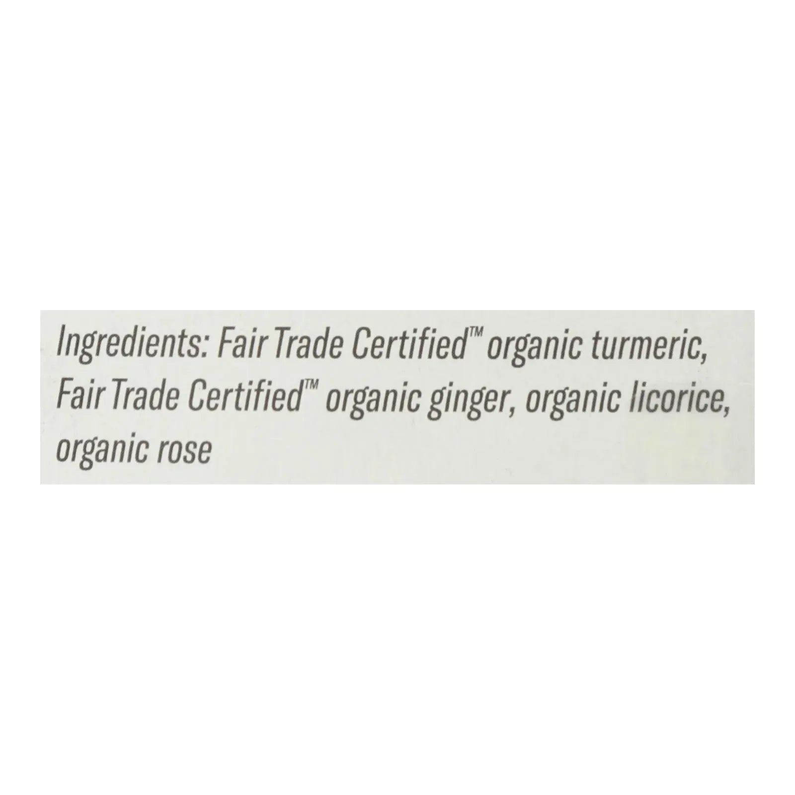 ingredients : fair trade certified organic turmeric;fair trade certified organic ginger;organic licorice;organic rose