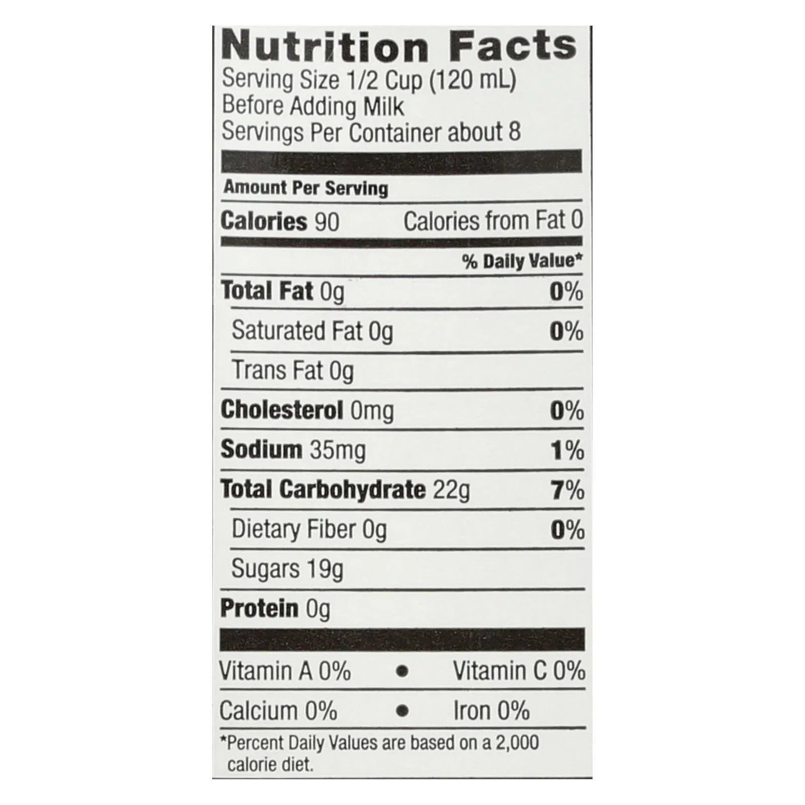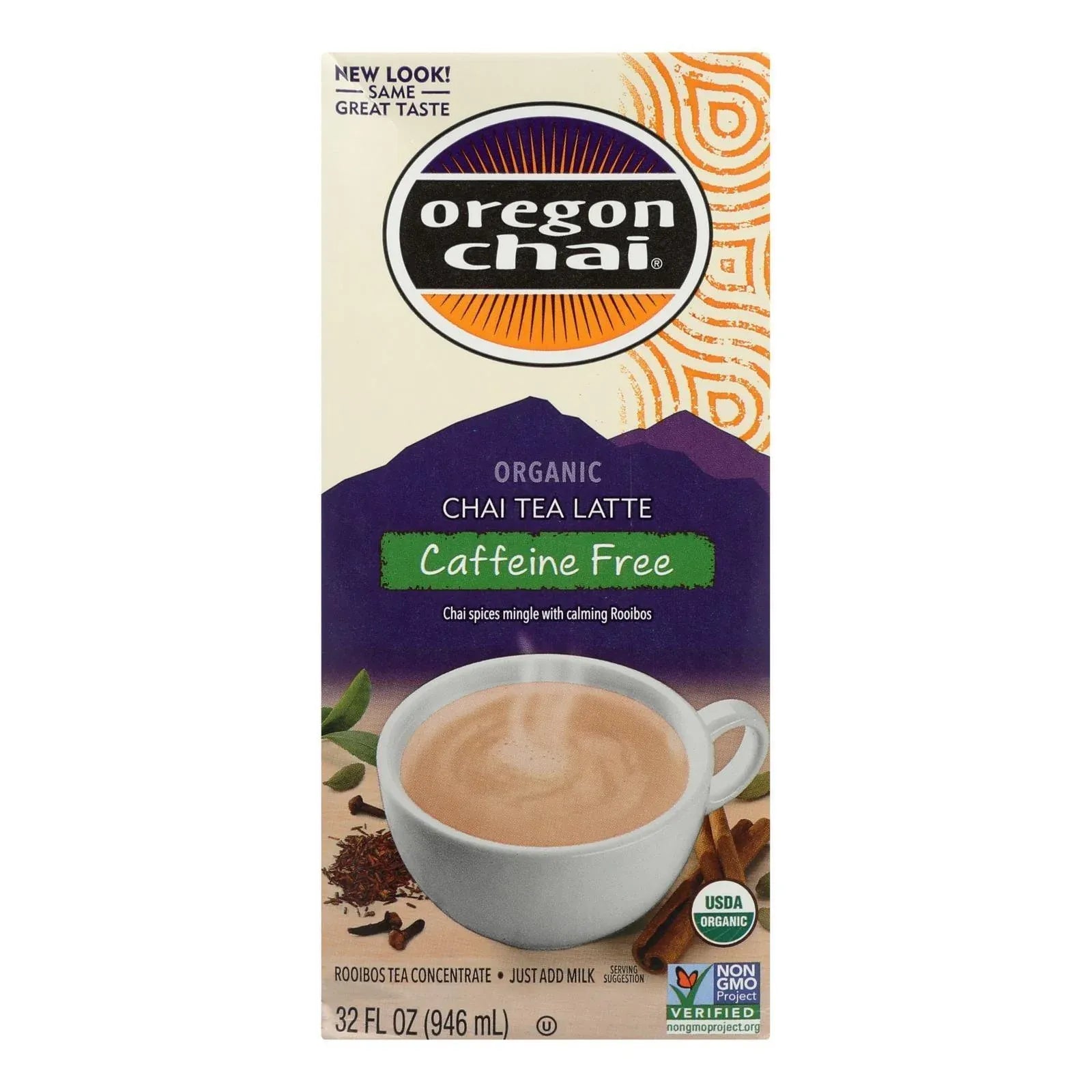 Oregon chai chai tea latte, caffeine free is a natural and delicious beverage option. Made with natural ingredients, this latte is free of unnatural and unnecessary additives. This product is gluten-free, kosher and organic. Each bottle of oregon chai chai tea latte, caffeine free contains 32 fl. Oz. Of latte with eight servings per bottle and 90 calories per serving.