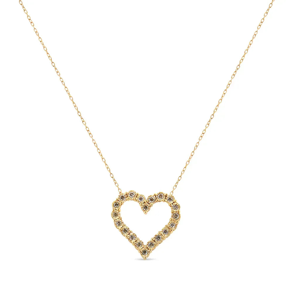 10K Yellow Gold Flashed .925 Sterling Silver 1/2 Cttw Champagne Diamond Miracle Plate Heart Pendant Necklace (K-L Color, I1-I2 Clarity) - 18"