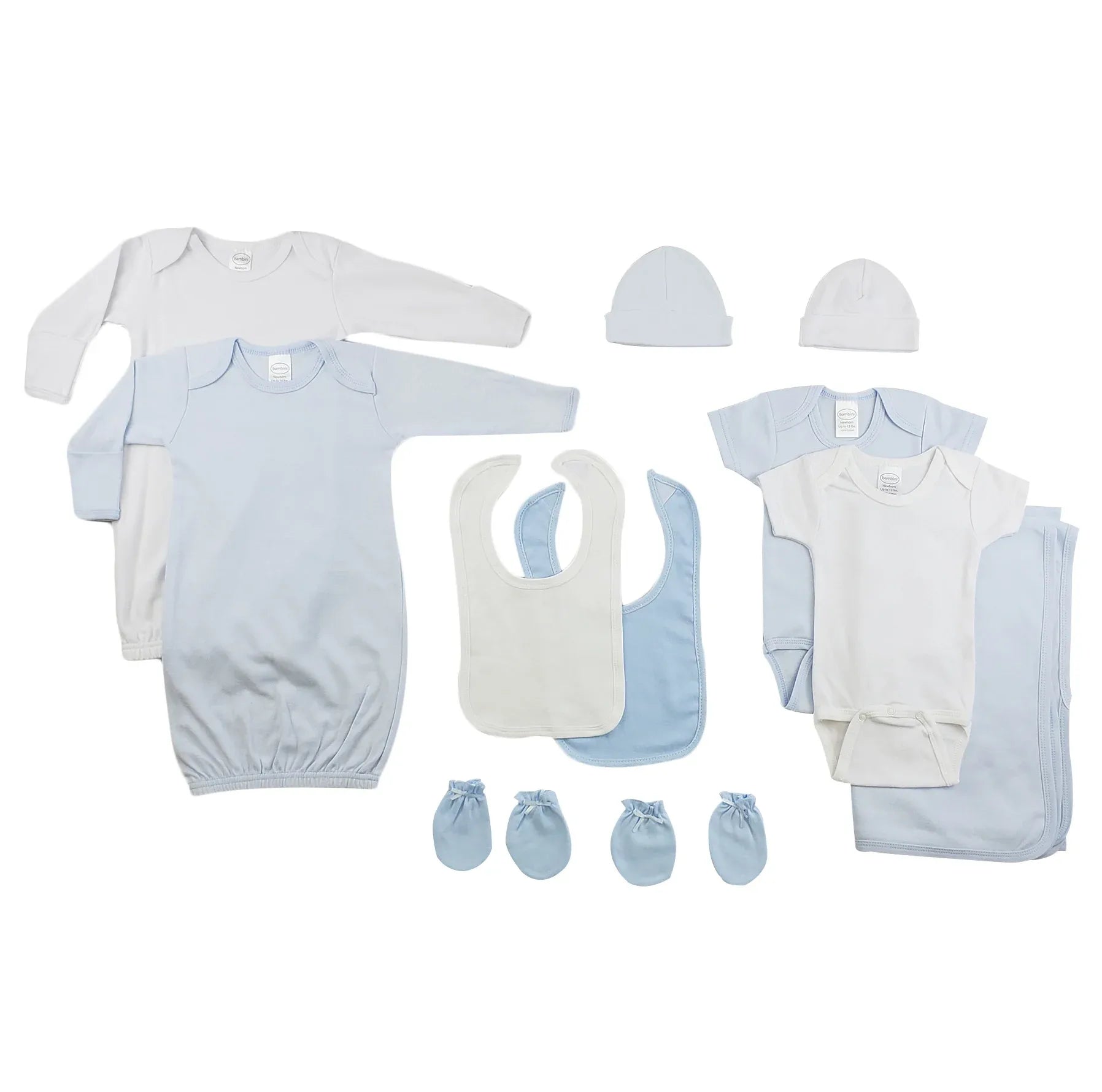 Blue Infant Gown (100% Cotton), Blue Infant Gown (100% Cotton), Blue Interlock Short Sleeve Onezie (100% Cotton), Blue Interlock Short Sleeve Onezie (100% Cotton), Blue Interlock Bib (100% Cotton), Blue Interlock Bib (100% Cotton), Blue Infant Mittens (Jersey), Blue Infant Mittens (Jersey), Blue Baby Cap (100% Cotton), Blue Baby Cap (100% Cotton), Blue Receiving Blanket (100% Cotton)