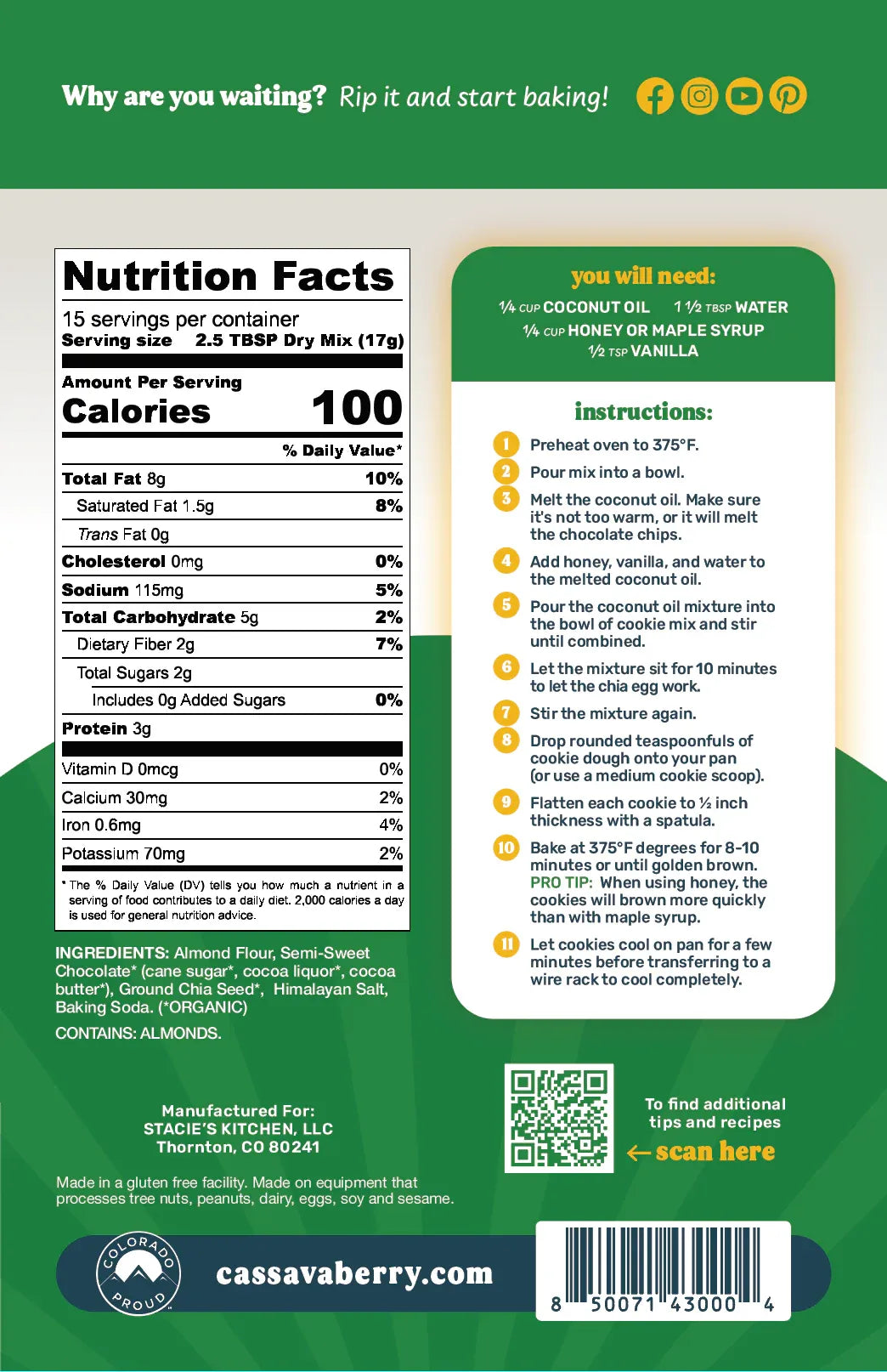 An image displaying Chocolate Chip Almond Flour Cookie Mix by Cassavaberry®
