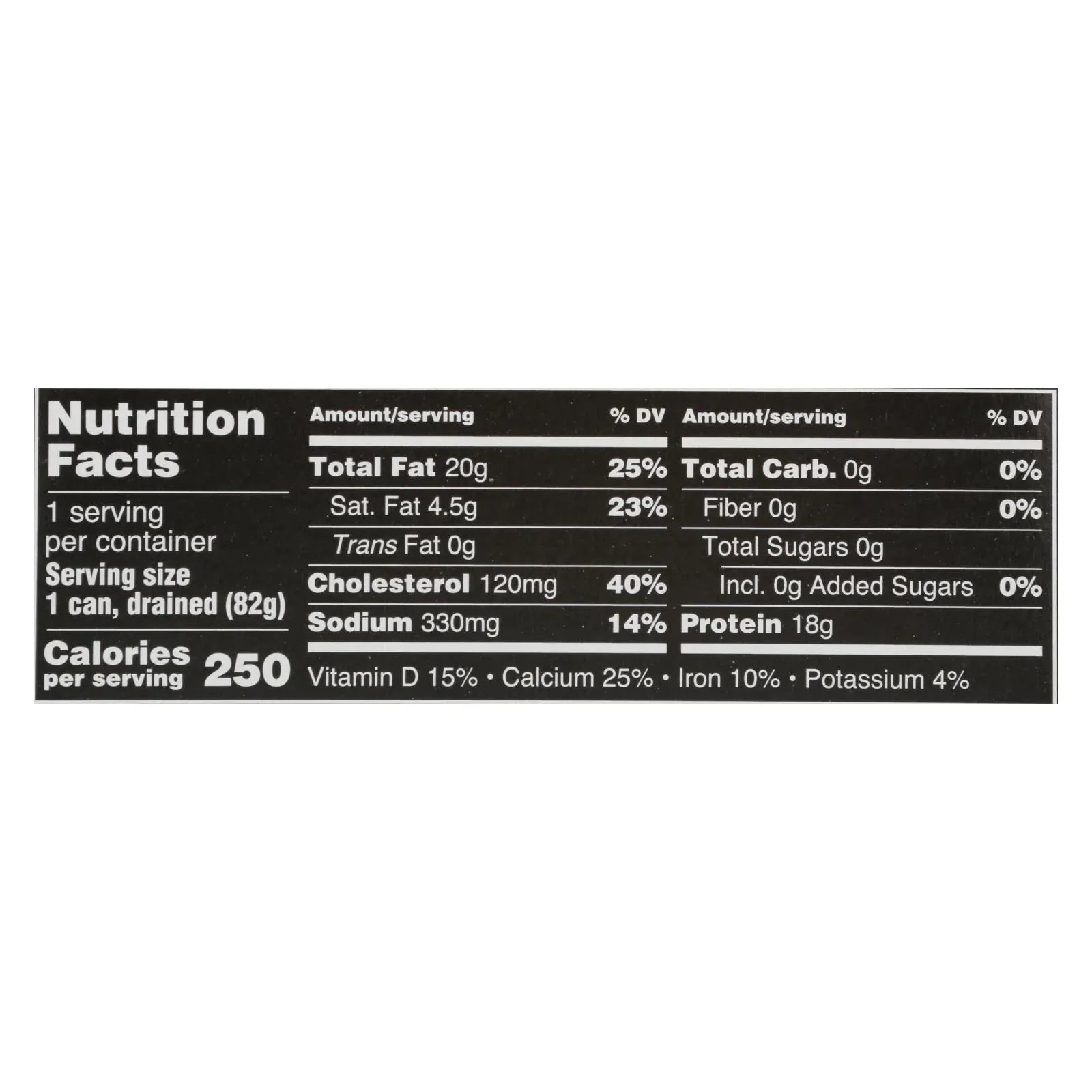 Crown prince sardines, brisling are wild-caught and ready-to-eat sardines that have been hand packed in extra virgin olive oil. These kosher and non-gmo sardines are packed at the peak of freshness and they are a good source of omega-3 fatty acids. Try these delicious sardines on crackers and sandwiches or in salads, soups, pastas, sauces and more. The exceptional taste of these sardines makes them a perfect addition to every kitchen. Each boxed can of crown prince sardines, brisling contains 3.75 oz. Of product. See nutrition facts panel for allergens.