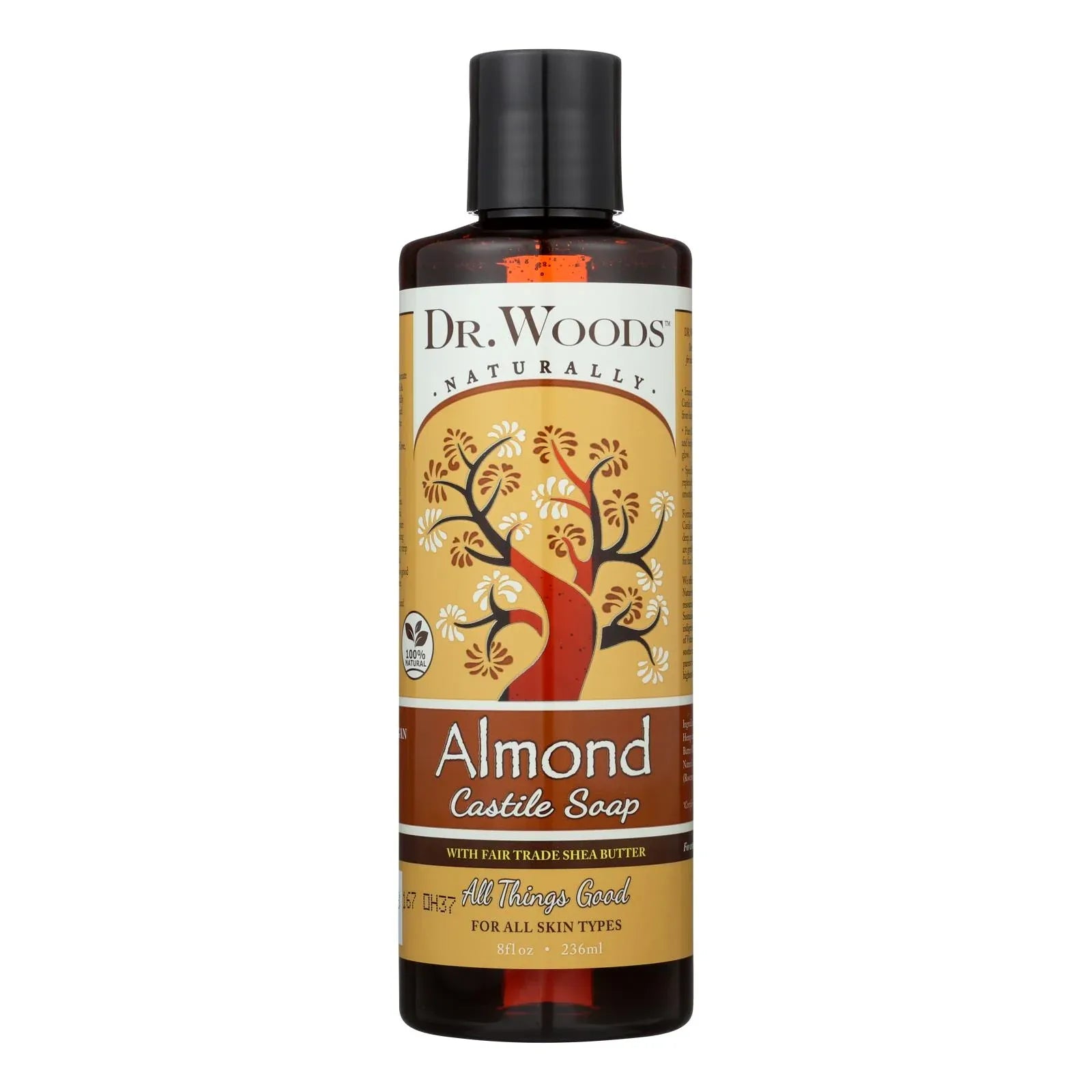 Dr. Woods castile soap, almond with fair trade shea butter is a gentle and luxurious soap. Made with naturally derived ingredients and traditional methods, this soap is free of unnatural and unnecessary additives. This product is gluten-free, cruelty-free and vegan friendly. Each bottle of dr. Woods castile soap, almond with fair trade shea butter contains 8 fl. Oz. Of soap. See label for warnings.