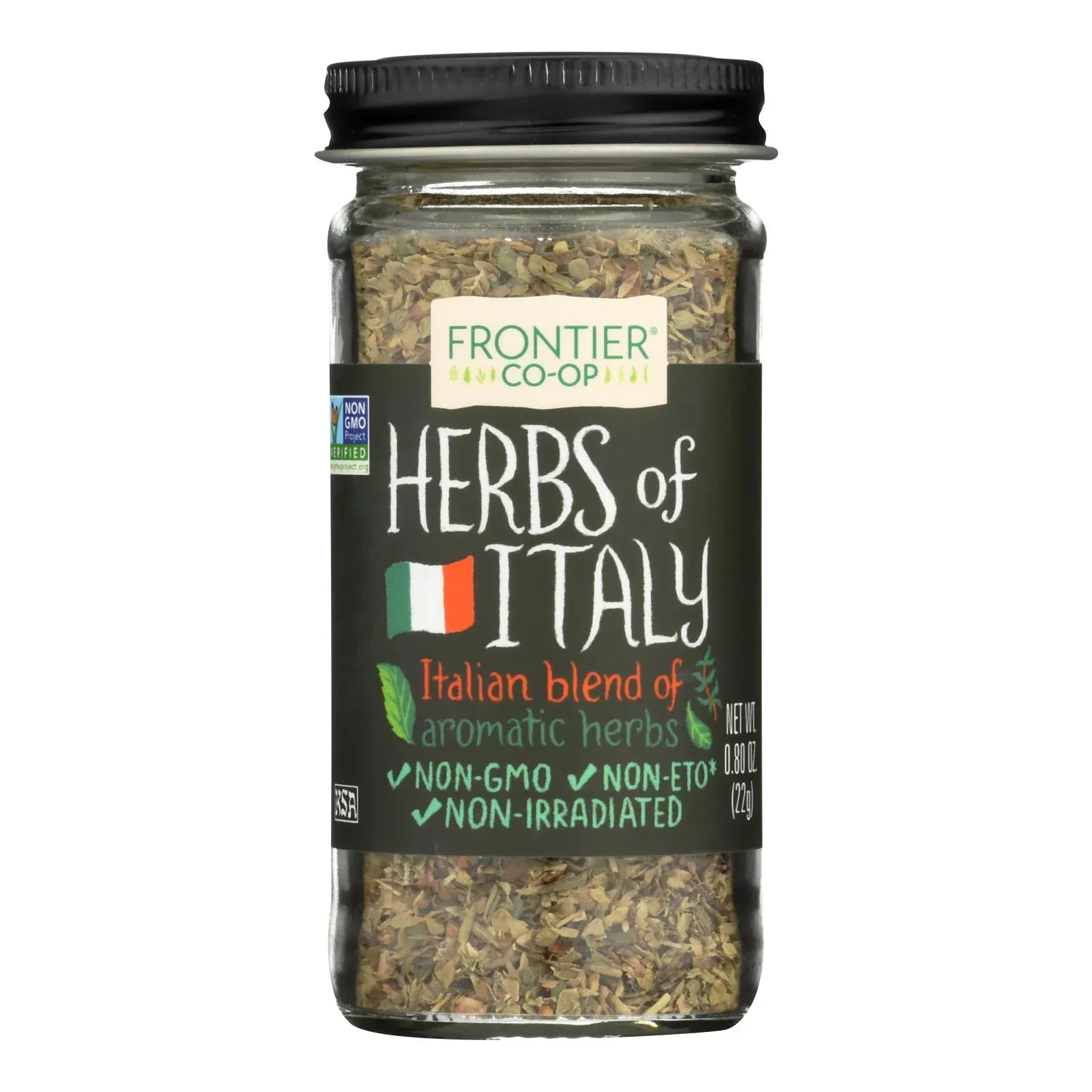 Frontier co-op herbs of italy, seasoning blend is never tested on animals. This product is a blend of oregano, thyme, basil and garlic making for a great combination for added flavor in your favorite main dish recipes. Frontier co-op herbs of italy, seasoning blend comes packaged with 0.8 oz. Of product for your convenience in a resealable, glass jar and is certified usda organic. This product is a delicious addition to appetizers, sauces, and dips. Frontier co-op is committed to quality, sustainability, and ethical trade.