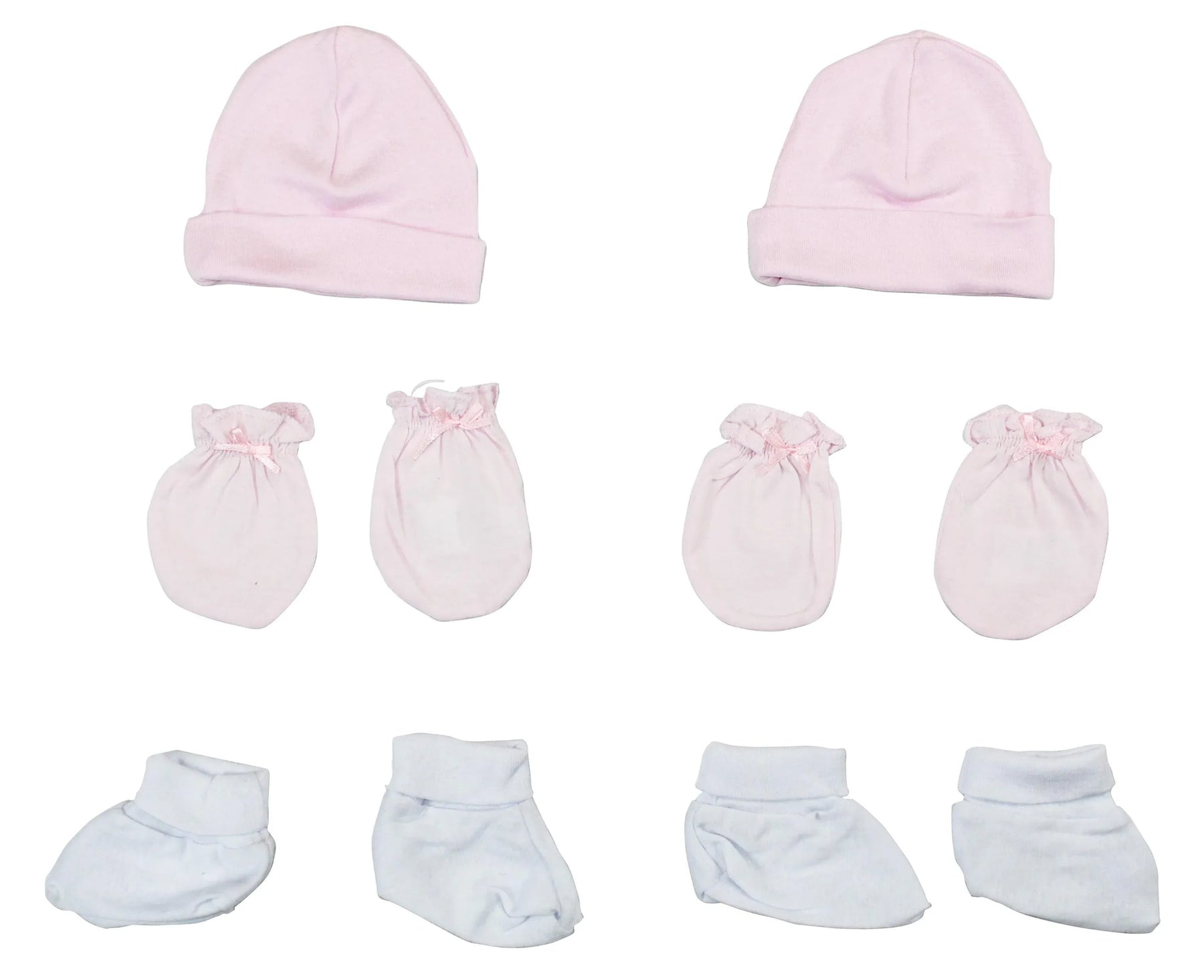 Pink Baby Cap (100% Cotton), Pink Infant Mittens (Jersey), Pink Baby Cap (100% Cotton), Pink Infant Mittens (Jersey), White Booties (100% Cotton), White Booties (100% Cotton)