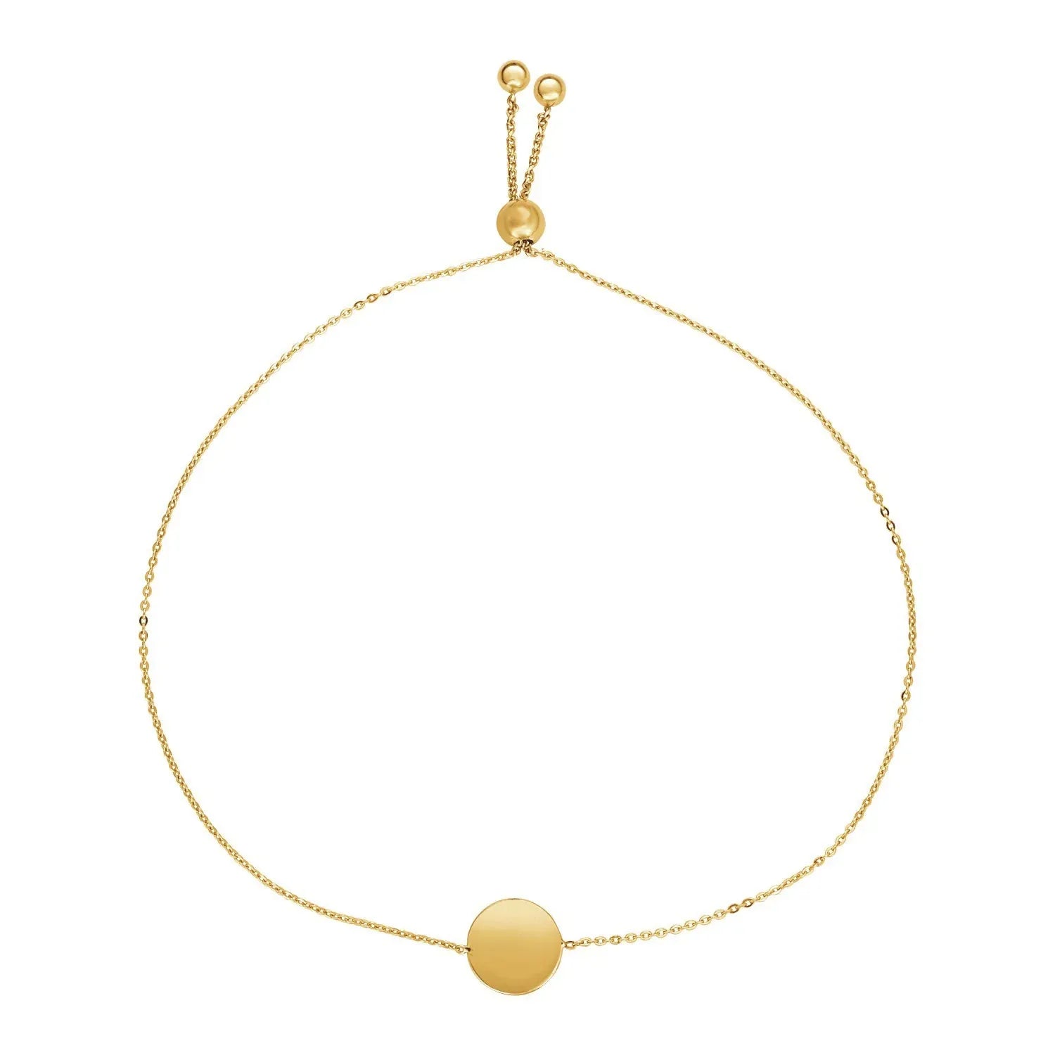 Adjustable Bracelet with Shiny Circle in 14k Yellow Gold