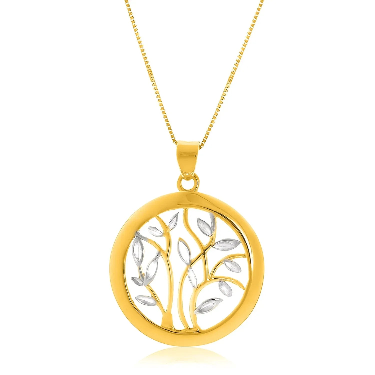 14k Two-Tone Gold Pendant with an Open Round Tree Design