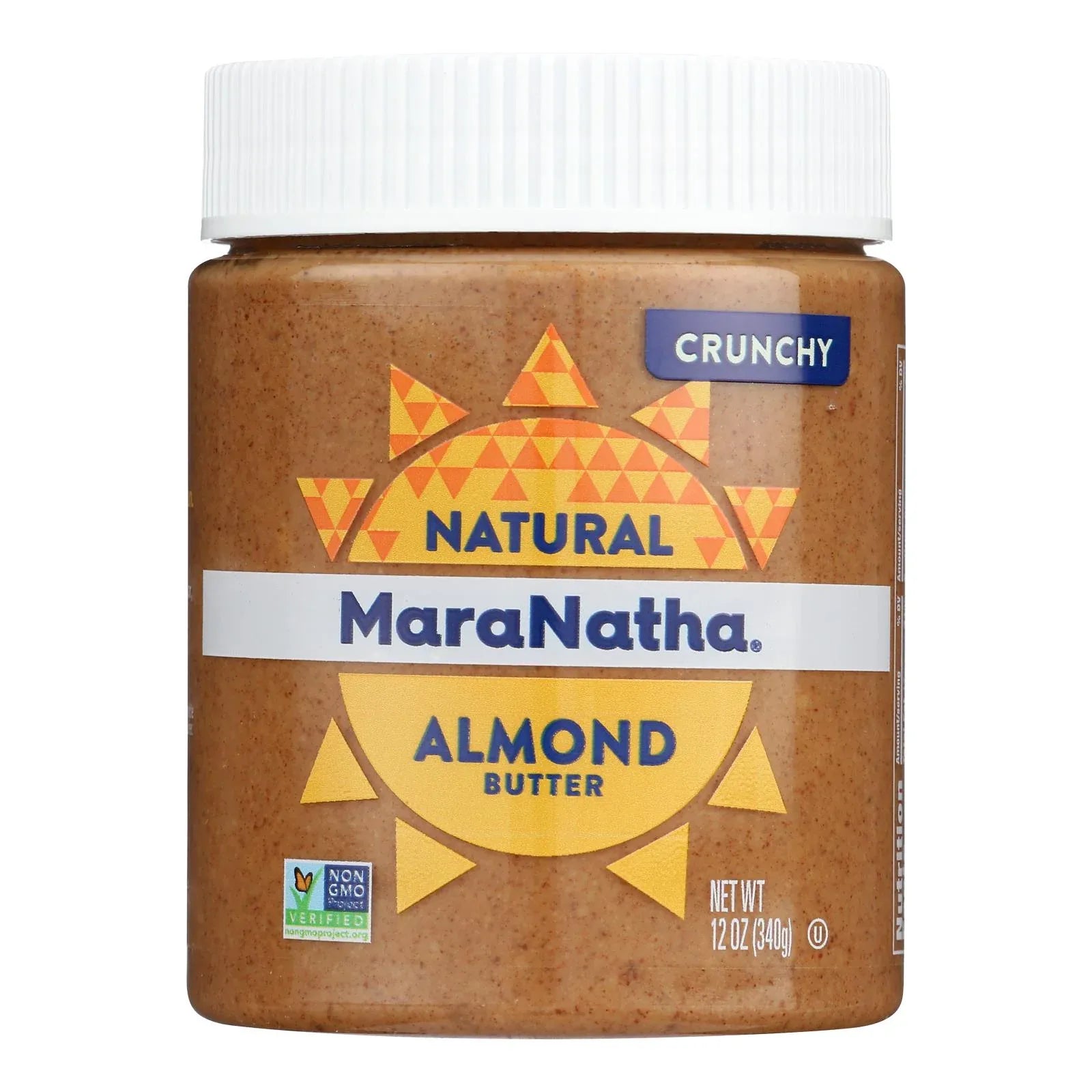 Maranatha crunchy no-stir almond butter is a delightfully crunchy natural nut butter. With natural california almonds as the primary ingredient, maranatha crunchy no-stir almond butter is free from unnatural and unnecessary additives, ensuring that the natural flavor of the almonds remains uncompromised. This product is kosher, non-gmo and gluten free. Each jar of maranatha crunchy no-stir almond butter contains 12 oz. Of nut butter with 11 servings per jar and 190 calories per serving. Stir and refrigerate after opening. See nutrition facts panel for allergens.