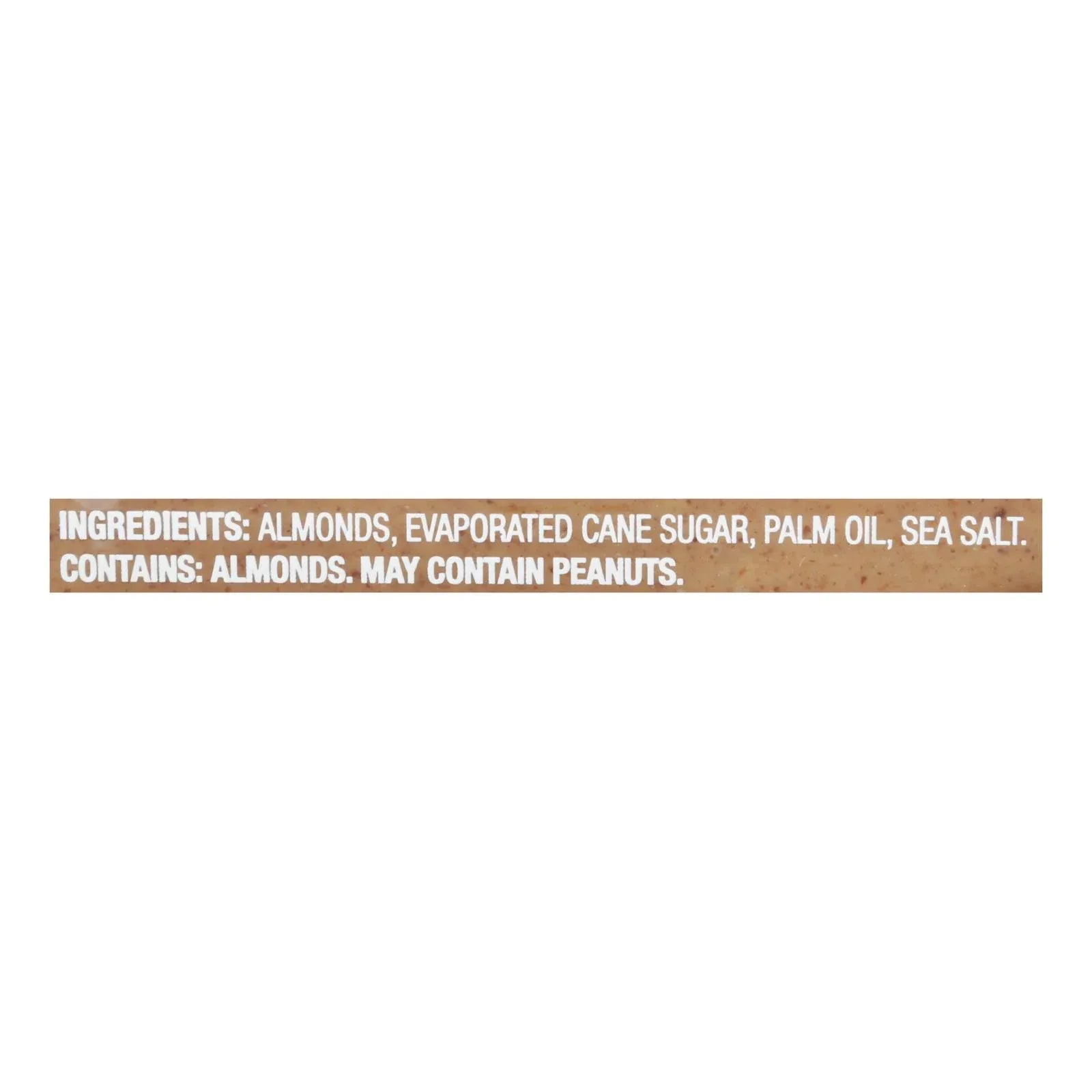 ingredients : roasted almonds;evaporated cane sugar;palm oil;sea salt