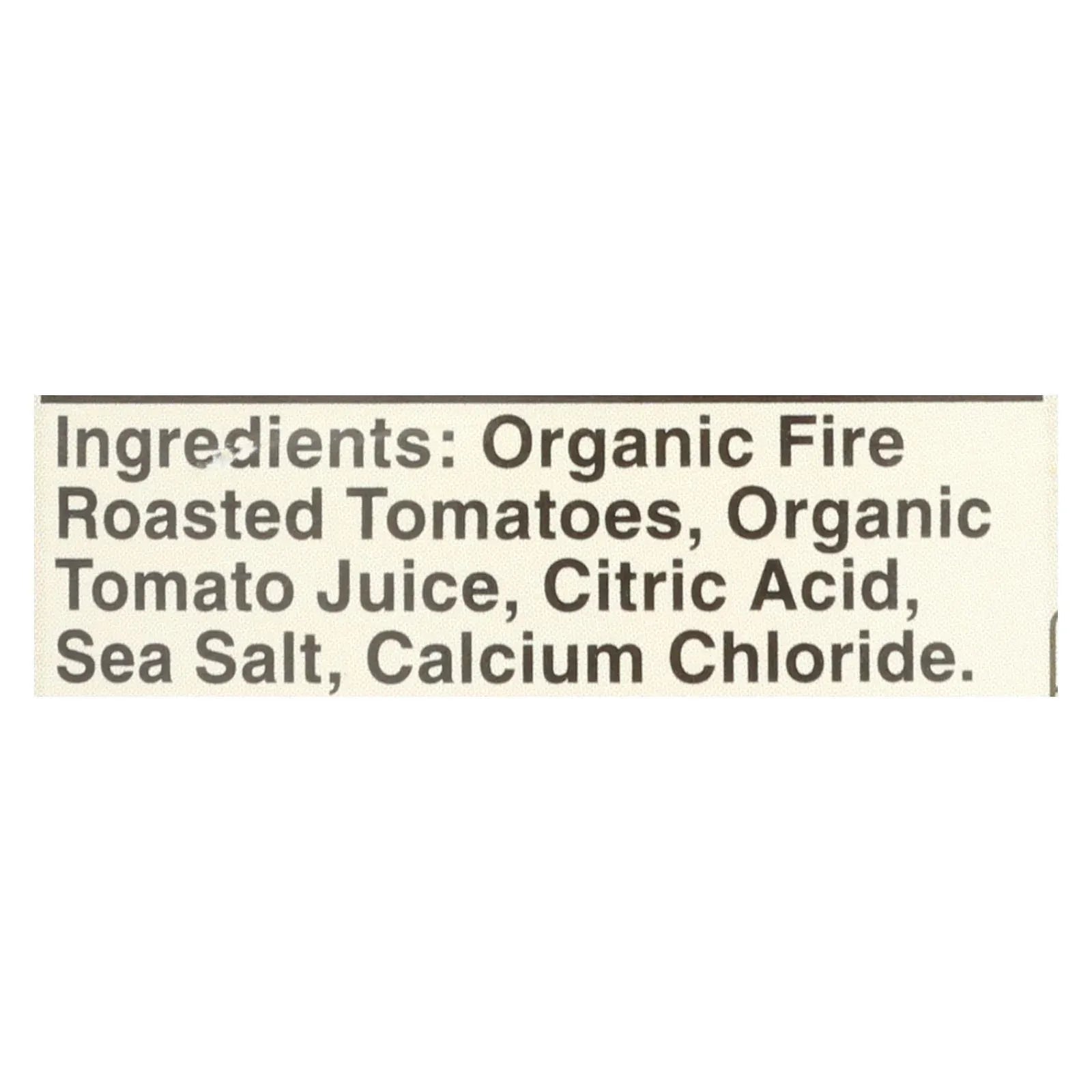 ingredients : organic fire roasted tomatoes;organic tomato juice;citric acid;sea salt;calcium chloride