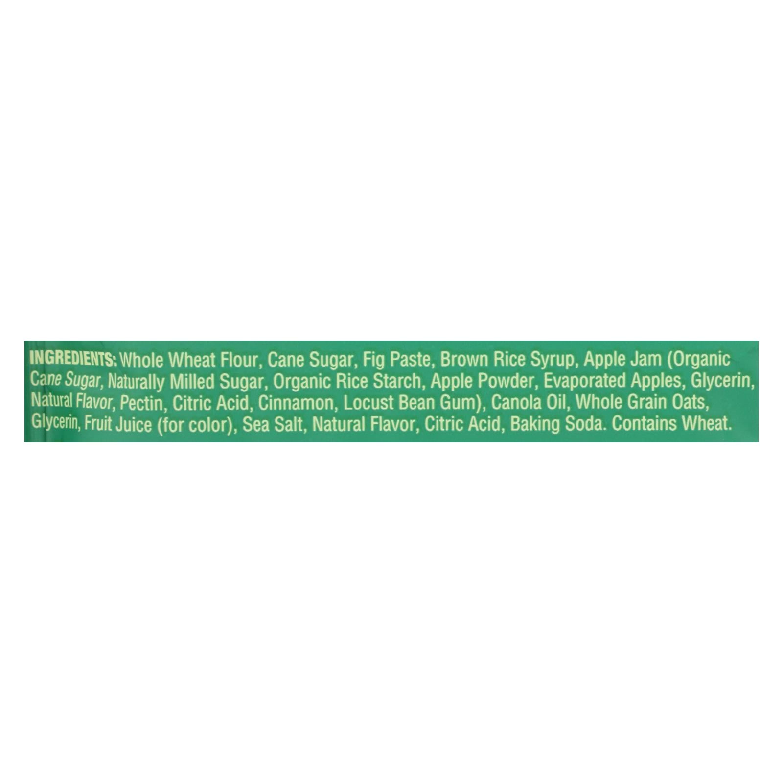 ingredients : whole wheat flour;cane sugar;fig paste;brown rice syrup;apple jam;naturally milled sugar;rice starch;apple powder;evaporated apples;glycerin;natural flavor;pectin;citric acid;cinnamon;locust bean gum;canola oil;whole grain oats;fruit juice;for color;sea salt;baking soda