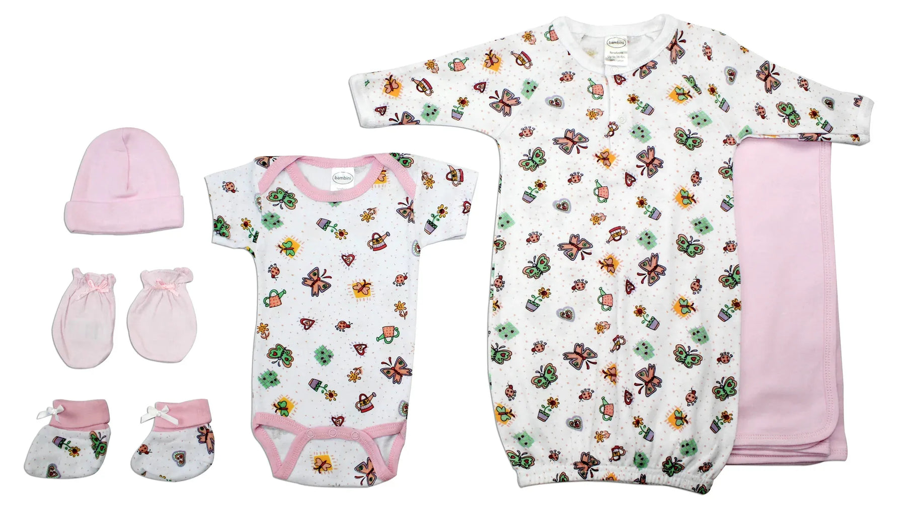 Bambini layette set perfect for any newborn baby made from soft and cozy cotton baby clothes keeping the little ones comfortable. This set makes the perfect baby shower present for any soon-to-be momma!