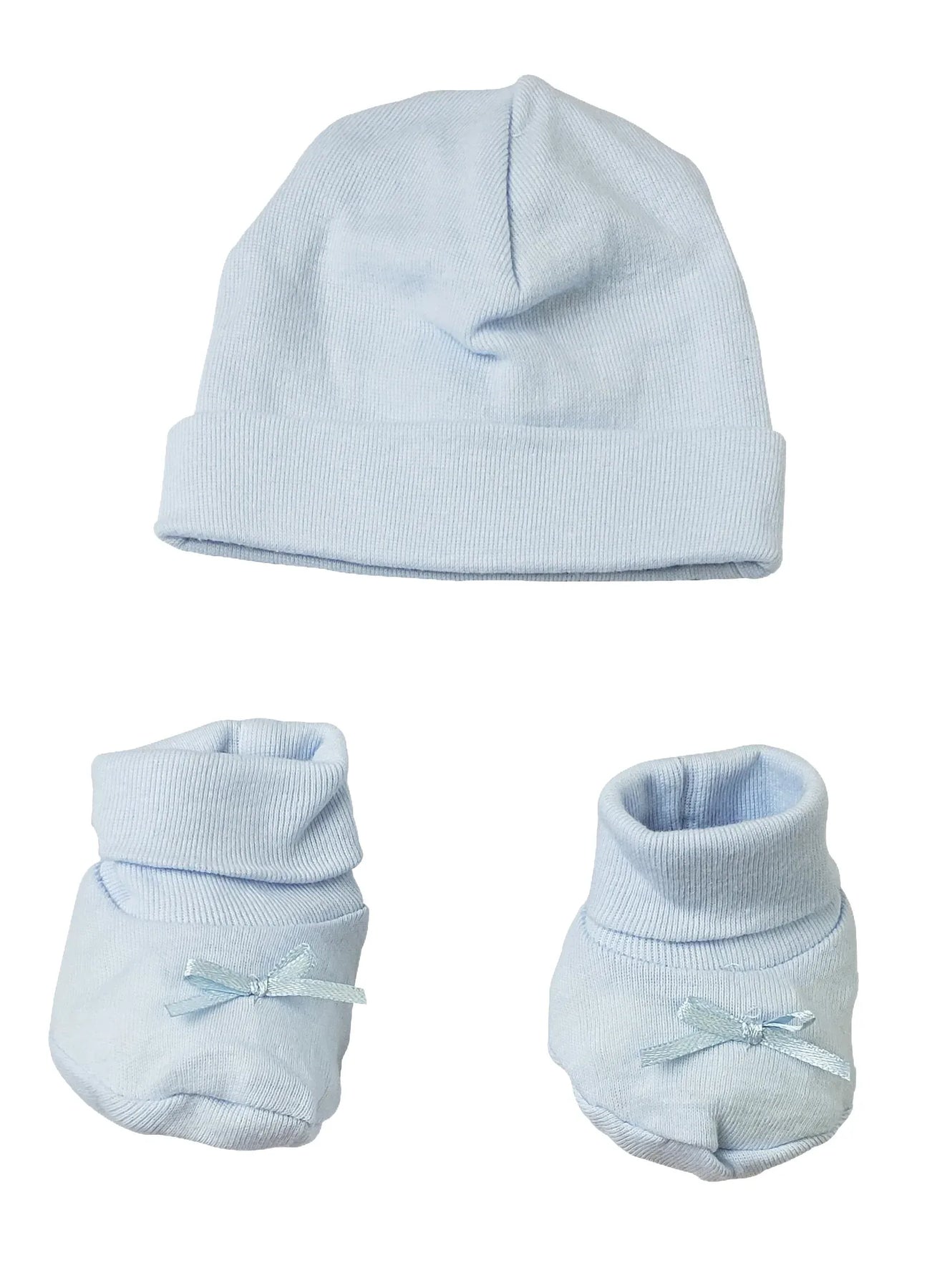 Preemie Rib Knit Pastel Cap & Booties Set (100% Cotton)