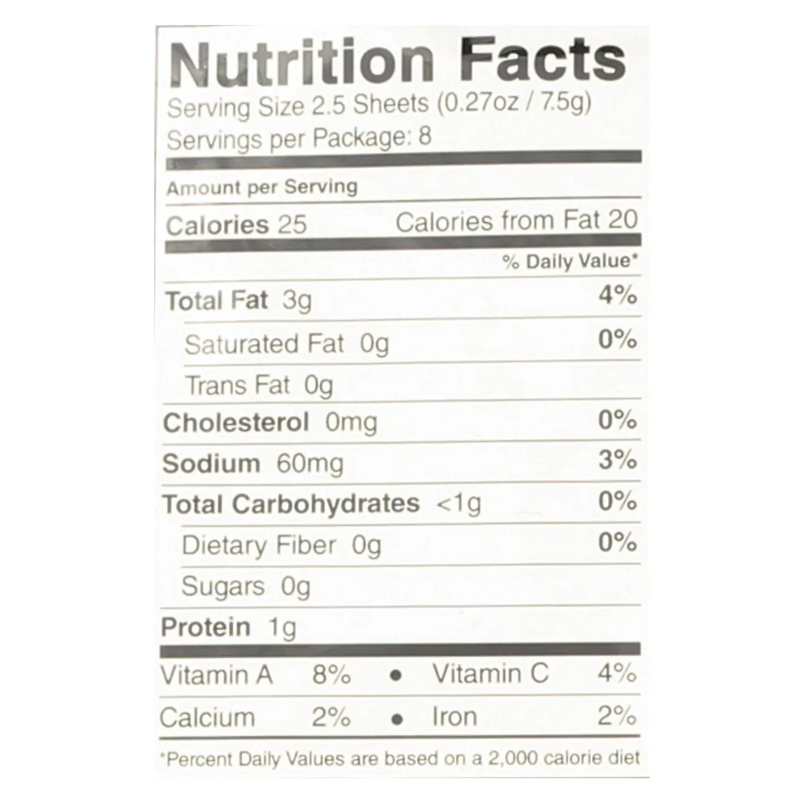 ingredients : organic seaweed;organic extra virgin olive oil;sea salt