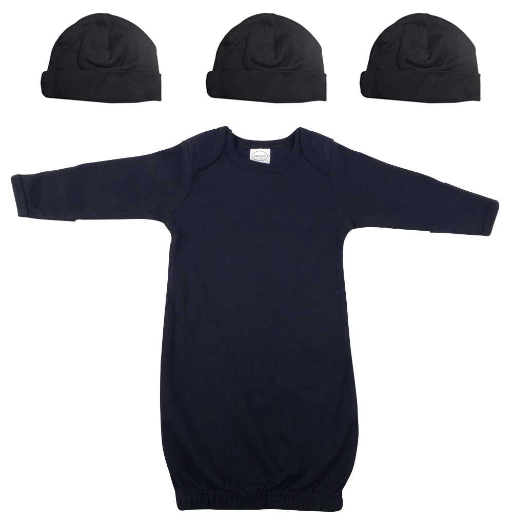 Black Infant Gown (100% Cotton), Black Baby Cap (100% Cotton), Black Baby Cap (100% Cotton), Black Baby Cap (100% Cotton)
