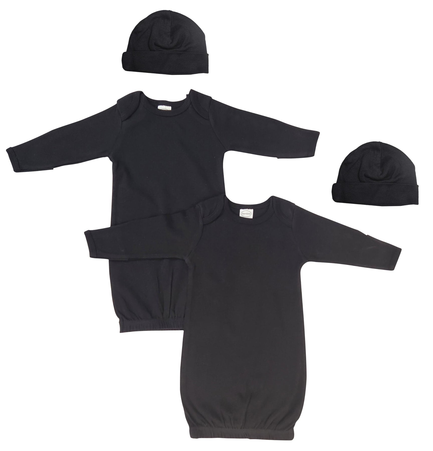 Black Infant Gown (100% Cotton), Black Infant Gown (100% Cotton), Black Baby Cap (100% Cotton), Black Baby Cap (100% Cotton)